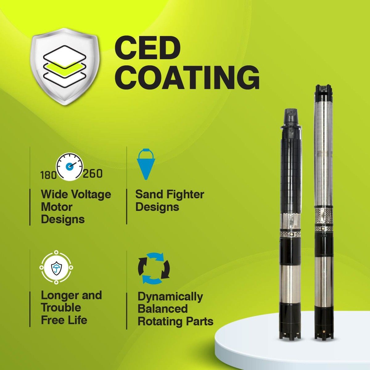 Kirloskar '60HHN-1016' 10 Hp three-phase Borewell Submersible Pump (Water Filled) has a long and trouble-free life. These submersible pumps have corrosion & abrasion-resistant parts for the smooth working of the pump. The submersible water pump has a high discharge capacity, which is ideal for Irrigation in horticulture & agriculture, domestic and community water supply, Rural water supply, Sprinkler Key Features High Efficiency & Energy Saving Design - Kirloskar submersible pump has a higher output at lesser operating cost and longer life This borewell submersible pump is designed to prevent overloading - protects from overloading & trouble-free operations for the years Sand Fighter designs restrict the entry of sand in motors and protect the pump and motor bushes Motors with “B” class insulation CED Coating - provides 5 times more protection from corrosion over conventional painting Glycol Mixed Water is specially developed to improve the anti-freezing properties of motor and prevent corrosion