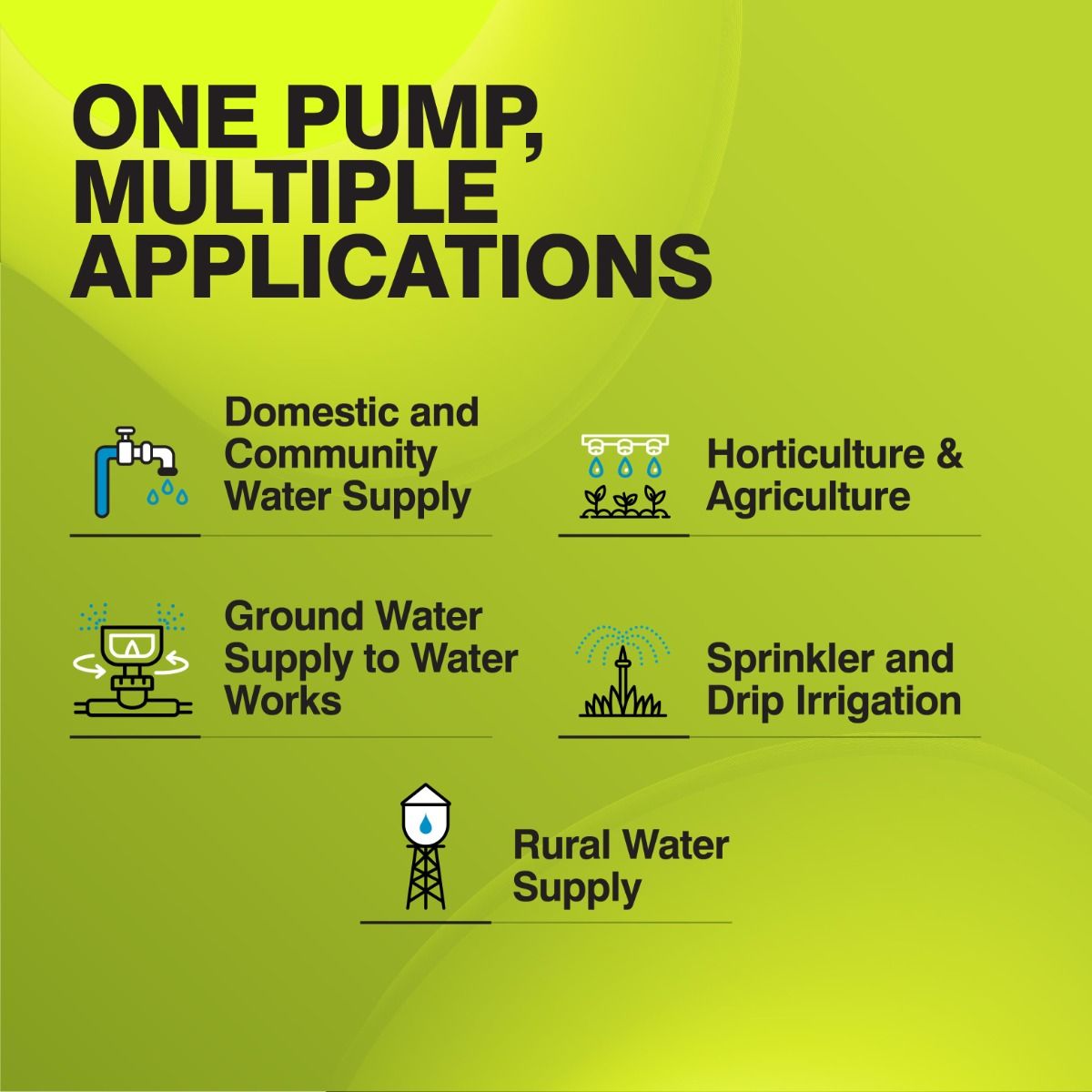 Kirloskar '80HHN-1012' 10 Hp Borewell Submersible Water Pump (Water Filled) has a long and trouble-free life. These submersible pumps have corrosion & abrasion-resistant parts for the smooth working of the pump. The submersible water pump has a high discharge capacity, which is ideal for Irrigation in horticulture & agriculture, domestic and community water supply, Rural water supply, Sprinkler Key Features High Efficiency & Energy Saving Design - Kirloskar submersible pump has a higher output at lesser operating cost and longer life The borewell submersible pump is designed to prevent overloading - protects from overloading & trouble-free operations for the years Sand Fighter designs restrict the entry of sand in motors and protect the pump and motor bushes Motors with “B” class insulation CED Coating - provides 5 times more protection from corrosion over conventional painting Glycol Mixed Water is specially developed to improve the anti-freezing properties of motor and prevent corrosion