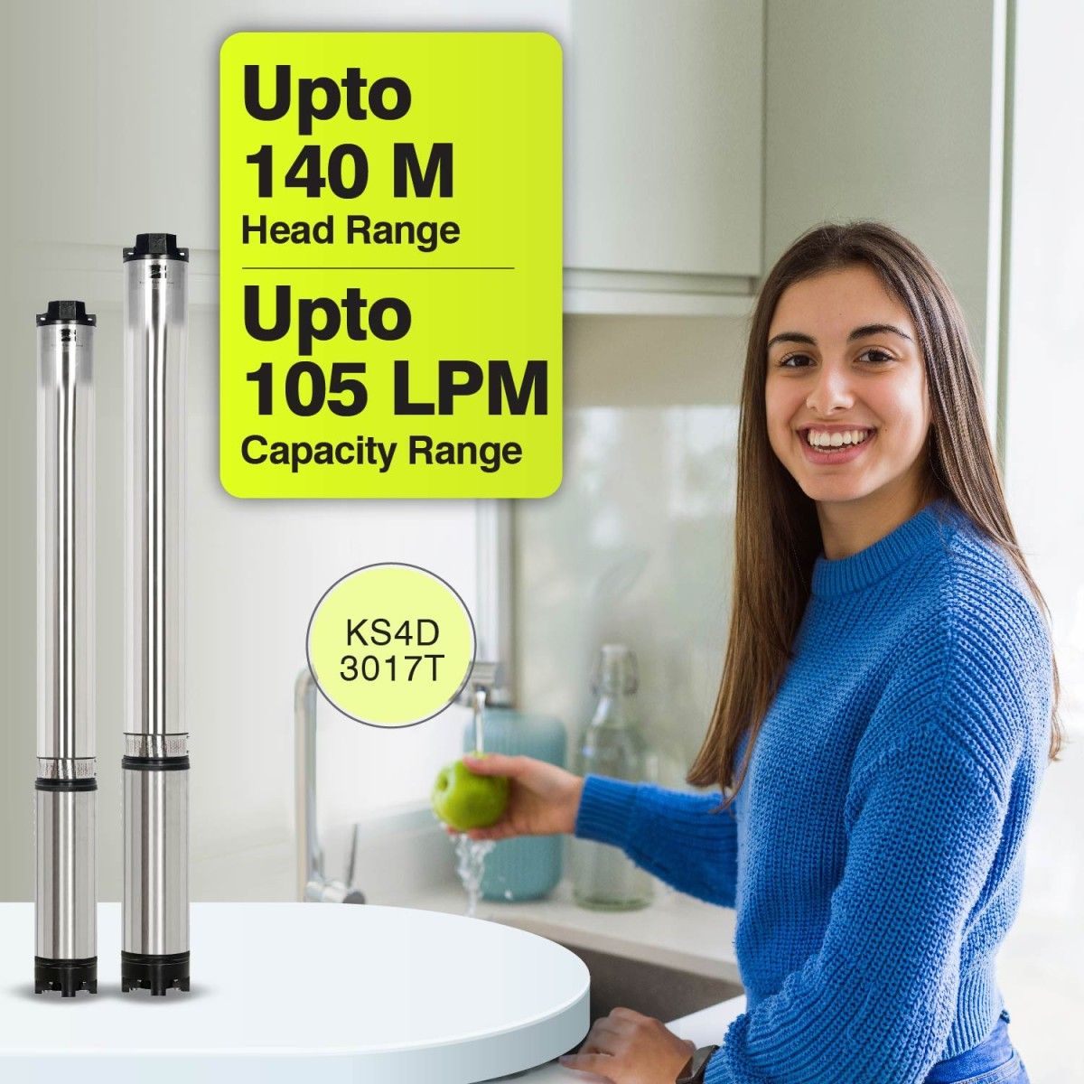 Kirloskar Borewell Submersible Pump, KS4D-3017T, 3 HP, Three Phase, 415 Volts, Size 38mm