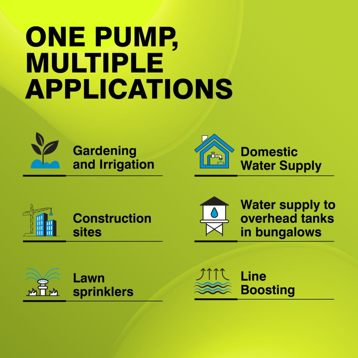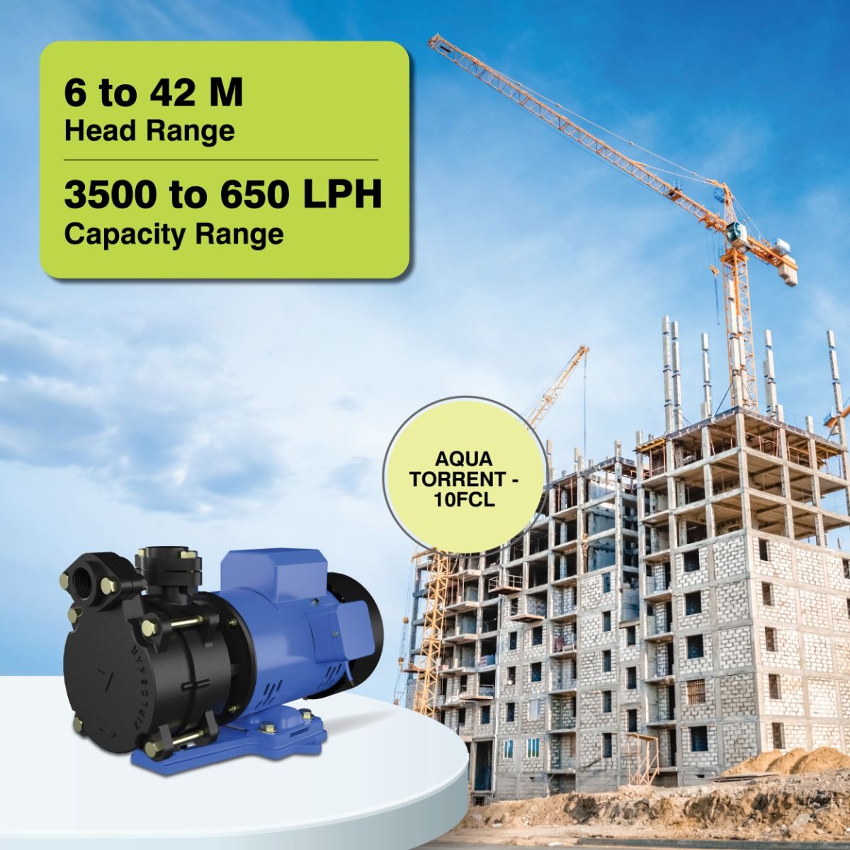 Introducing the Aqua Torrent 10FCL 1 Hp Monobloc Pump, a powerful and reliable Kirloskar water pump designed to meet your domestic and agricultural water needs. Whether you need to supply water for your home, garden, or farm, this pump is built to deliver consistent performance. Features Powerful Performance: With a 1 HP single-phase motor, this monobloc pump can effortlessly handle various water pumping tasks, ensuring you have a consistent and reliable water supply. Durable Build: The pump is built to last, thanks to its sturdy construction and high-quality materials. It can withstand tough conditions and continue to operate smoothly. Efficient Operation: The Aqua Torrent 10FCL pump is designed for energy efficiency, which means you can enjoy excellent performance without worrying about high electricity bills. Compact Design: The compact and lightweight design makes installation and maintenance a breeze. It's easy to fit in any location and is suitable for both indoor and outdoor applications. Versatile Use: This pump is ideal for various applications, including supplying water to overhead tanks, gardens, farms, and more. It can handle different types of water sources, including borewells and open wells. Easy to Maintain: Designed for hassle-free maintenance, this pump reduces downtime and ensures that you can keep it running smoothly with minimal effort. High Flow Rate: The pump provides a high flow rate, ensuring you get the water you need when you need it. It's perfect for irrigation, domestic use, and other water distribution tasks.