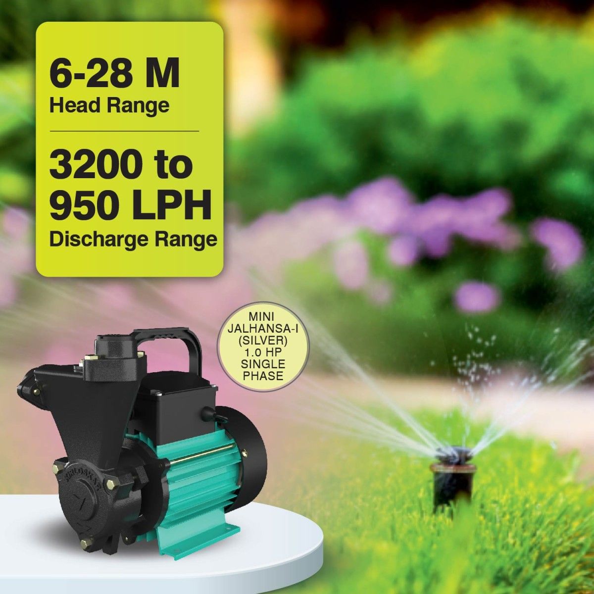 Kirloskar Self Priming pump comprises a thermal overload protector for protection of the motor from overloading. Suitable for the voltage range 180 to 260 Volts (Single Phase Pump) and are thus perfectly suited for water supply to overhead tanks in bungalows, gardens/ fountains, small farm irrigation, Sumps & water tanks. Key Features • High efficiency and energy-saving design - Delivers optimum efficiency at lower energy consumption resulting in significant cost saving • TOP - Thermal Overload Protector - The pump set features a Thermal Overload Protector that protects the motor from overloading, shielding the motor and associated circuit from the effects of fault currents • Wide voltage design - The motor is designed to withstand wide voltage fluctuation from 180 to 260 Volts Single phase • Shielded Ball Bearings - No external lubrication is required through the life cycle