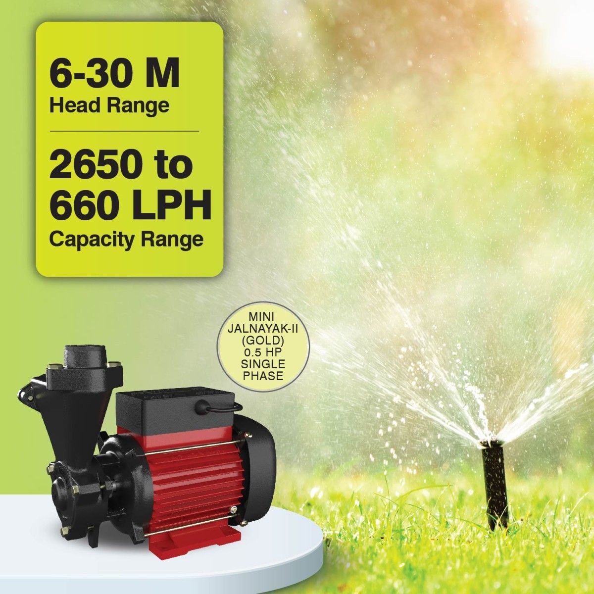 Kirloskar Self-priming Pump, MINI JALNAYAK-II (Gold), 0.5 HP, Single Phase, 220 Volts, Size 25mm X 2